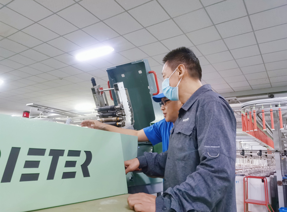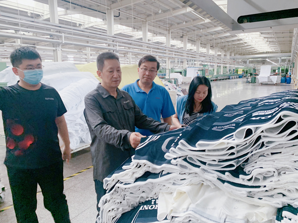 ▲相關(guān)負(fù)責(zé)人帶領(lǐng)兩位老師了解產(chǎn)品后整理工序