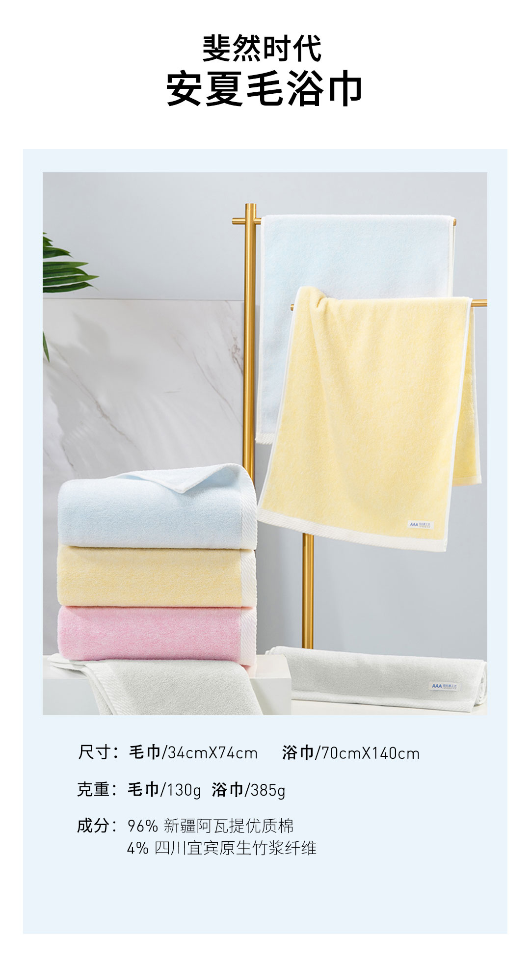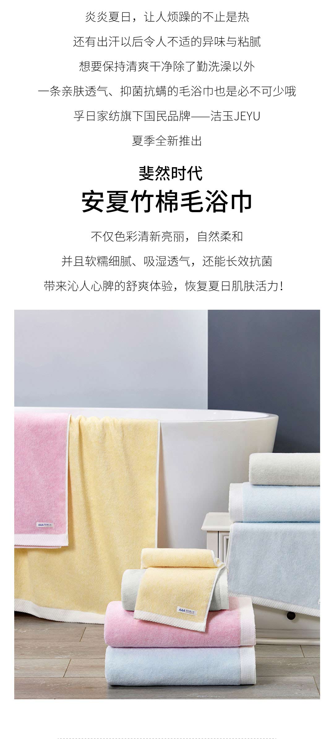 夏日清新的安夏竹棉毛浴巾,不止好看還健康護膚!
