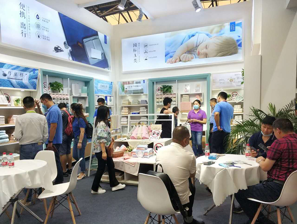 現(xiàn)場(chǎng)參展的紗布系列、鳥巢格系列、抗菌系列毛巾獲得了一致好評(píng)。